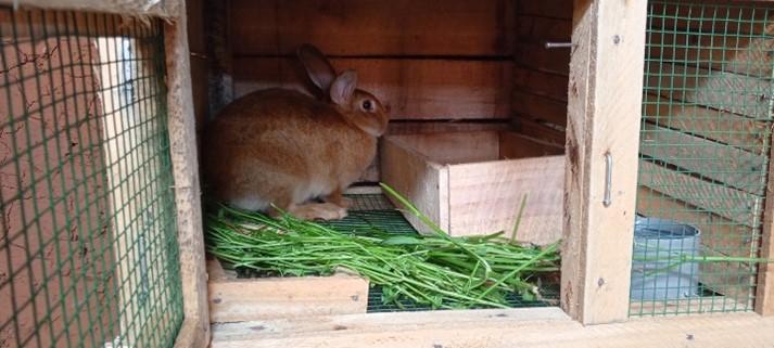 De eerste konijnen werden aangekocht in 2024. De eerste materialen werden aangekocht: een machine voor de productie van pellets en materialen voor het handhaven van de hygiëne en de netheid van de hokken.